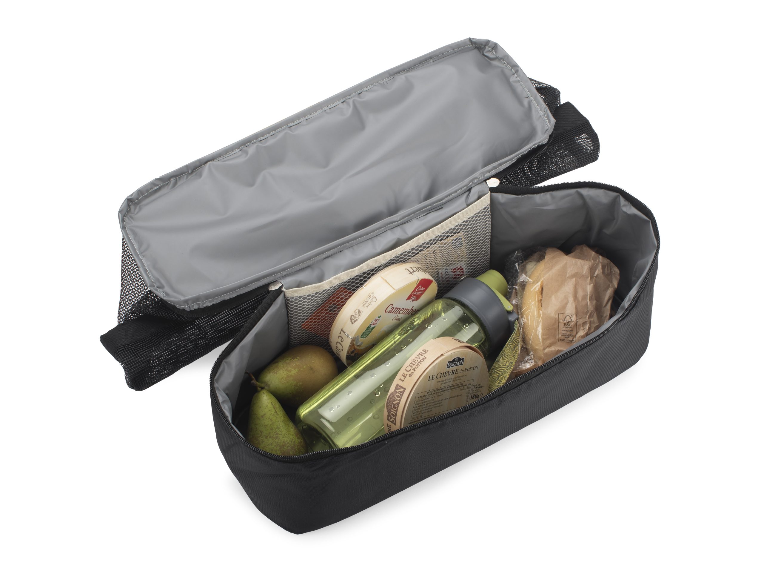Beach bag made of polyester and mesh. Very capacious. In addition, it has a chamber with PEVA thermal insulation with dimensions of 12 x 13 x 42 cm.