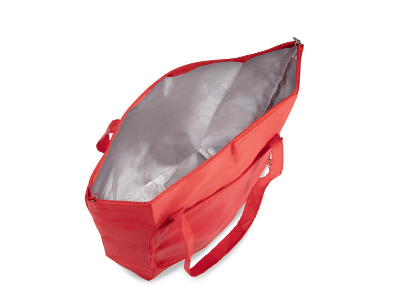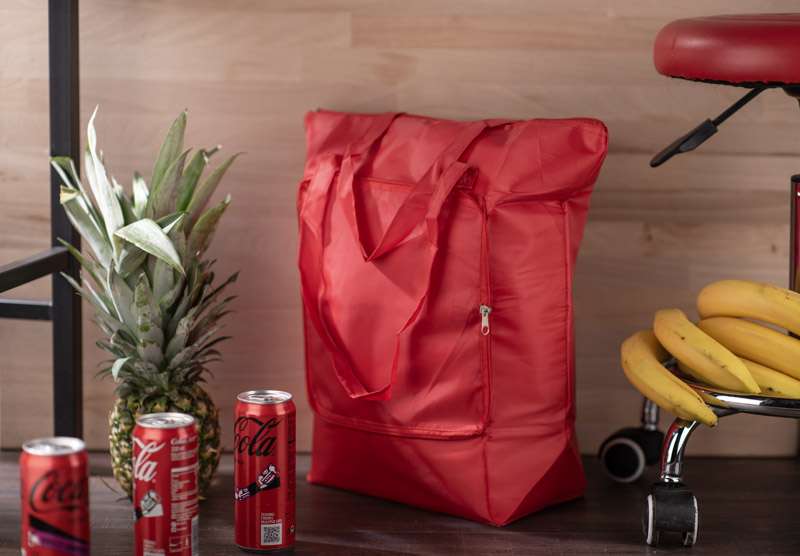 PINO is a practical foldable bag with a thermal insulation layer, perfect for shopping, the beach, or picnics. It has long handles for comfortable carrying. Thanks to its thermal insulation, it keeps the temperature of the stored products. It is zippered, and when folded, it takes up little space.