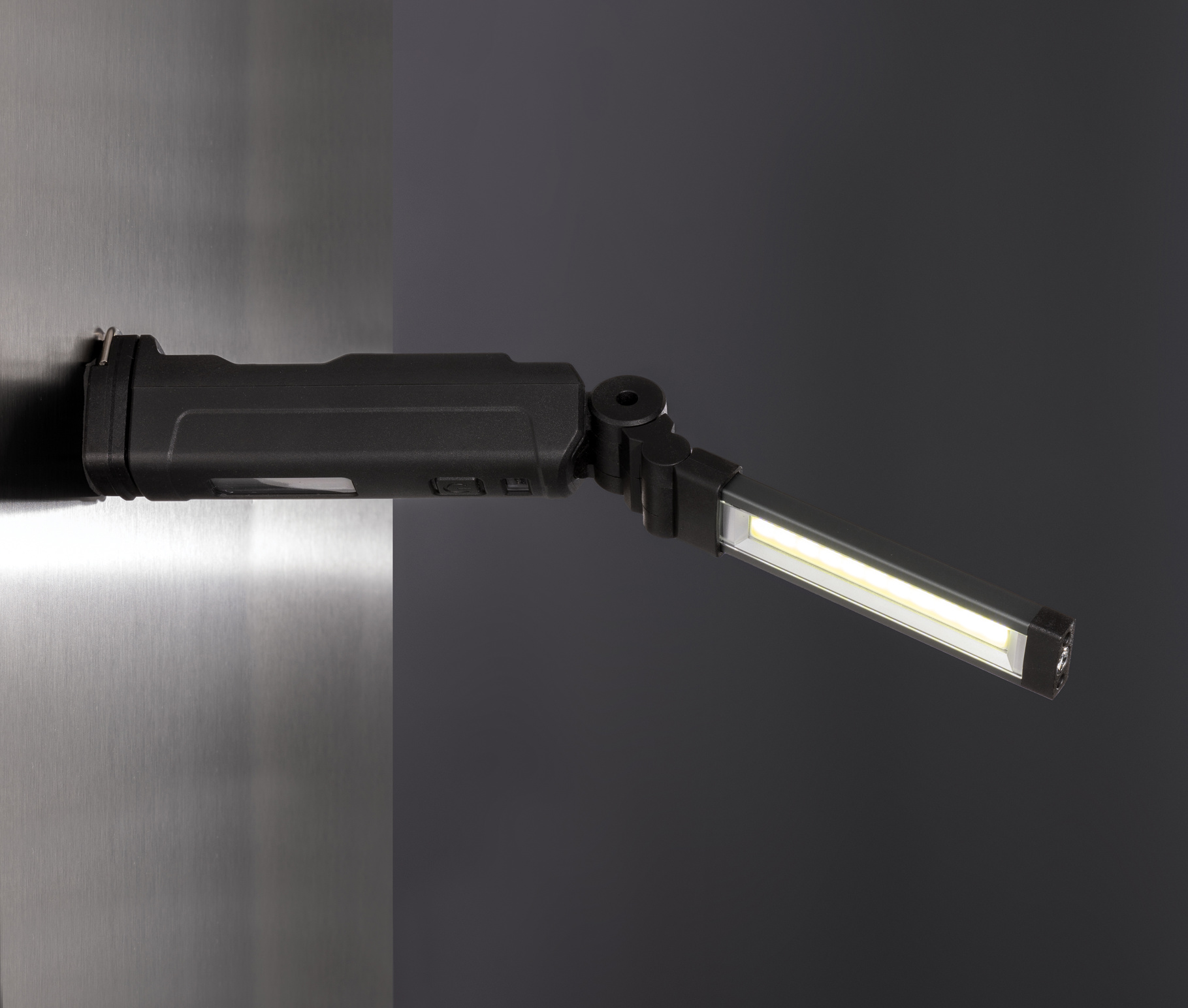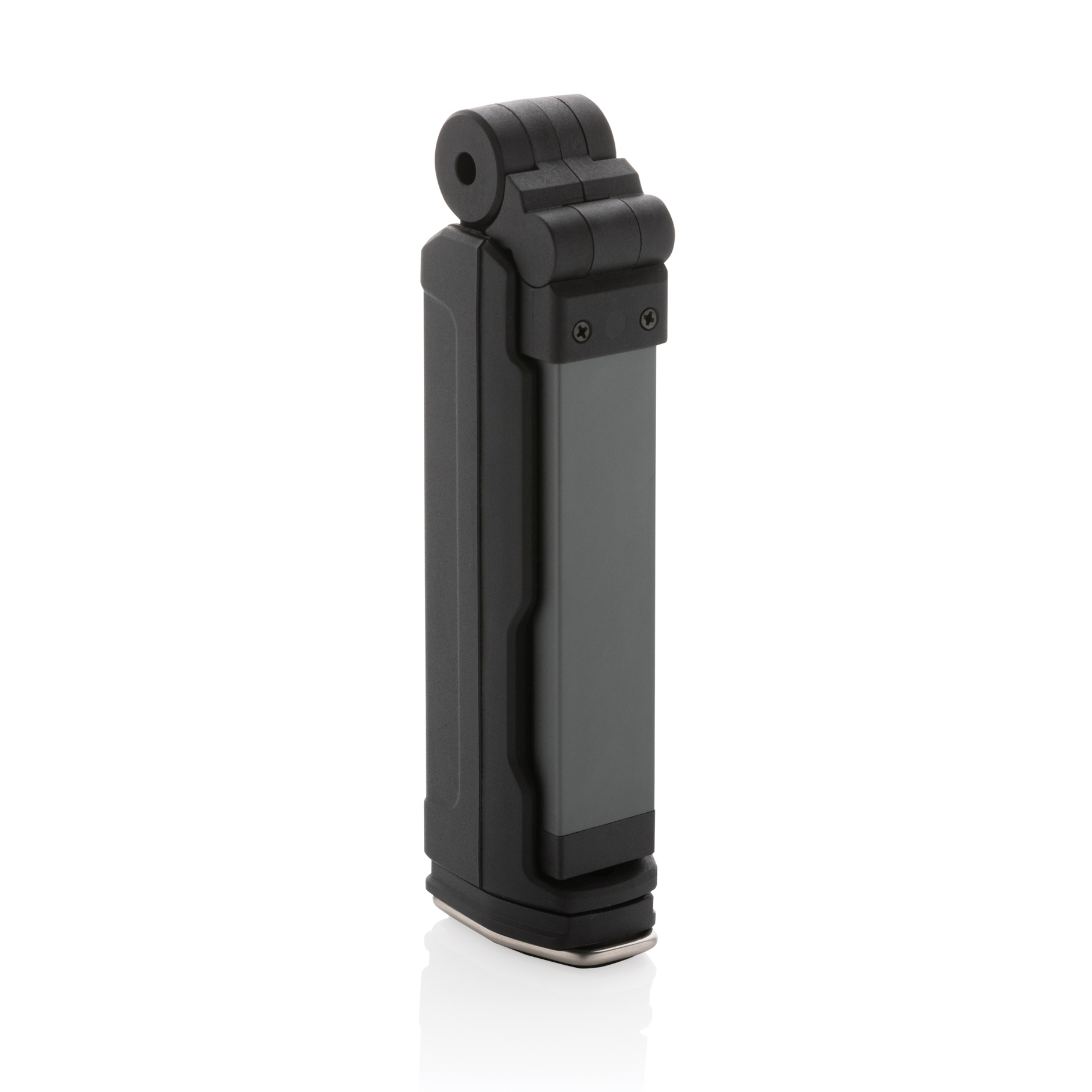 Functionality, and design all come together in this re-chargeable high performance work light made with RCS certified recycled ABS plastic. Total recycled content: 25% based total item weight. RCS certification ensures a completely certified supply chain of the recycled materials. The rainproof work light uses a re-chargeable A-grade 2000 mah lithium battery so no need to replace the batteries. Simply re-charge via your USB socket and the included charging base. The work light comes with 600 lumen COB light en 200 lumen LED light. With 4 modes: LED, COB, COB red, COB emergency flashing. The light can be completely turned around 360 degrees. With magnet and hook at the bottom. With type C port for re-charging and USB A port to charge mobile devices. Operating time on one charge: 3 hours.