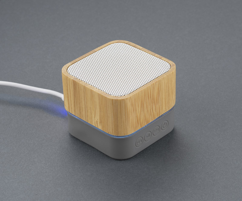 GROOVE is a neat and eye-catching speaker. It is characterized by an interesting housing, which is made of bamboo and silicone – both of these materials blend well with each other. The speaker is equipped with multi-colored light that gives it a party character. Music may be played via bluetooth (version 5.0) and micro SD card. The product complies with the relevant EU directives and has the CE mark. Technical data: output power: 3W, lithium-ion battery capacity: 350mAh, working time: approx. 2 hours, charging time: 2.5 hours.